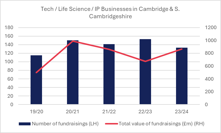 The most recent data from Beauhurst to the end of the first half of 2024 demonstrates that even with that slow-down, Cambridge has attracted relatively consistent investment volumes year on year. That said 2024 is not expected to be a bumper year.